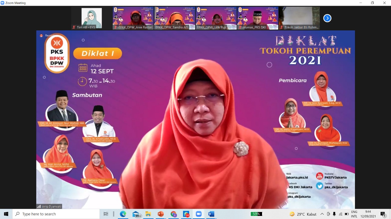 Ahad, 12 September 2021, anggota DPR RI dari Fraksi PKS yang berasal dari daerah pemilihan Jakarta Timur, Anis Byarwati, menghadiri acara Pendidikan dan pelatihan anggota perempuan PKS yang diselenggarakan oleh Bidang Perempuan dan Ketahanan Keluarga DPW PKS DKI Jakarta. Dalam acara ini, Anis didaulat menjadi salah satu narasumber yang menjelaskan materi tentang jatidiri PKS.
