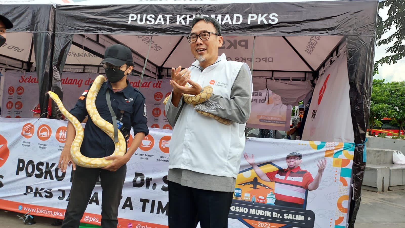” Pengalaman Foto bersama ular akan menjadi momen yang tidak terlupakan bagi pengunjung dan akan diceritakan kepada saudara di kampung halaman tentang unik nya salah satu fasilitas layanan posko mudik Dr.Salim PKS Jakarta Timur” tutur MTZ.