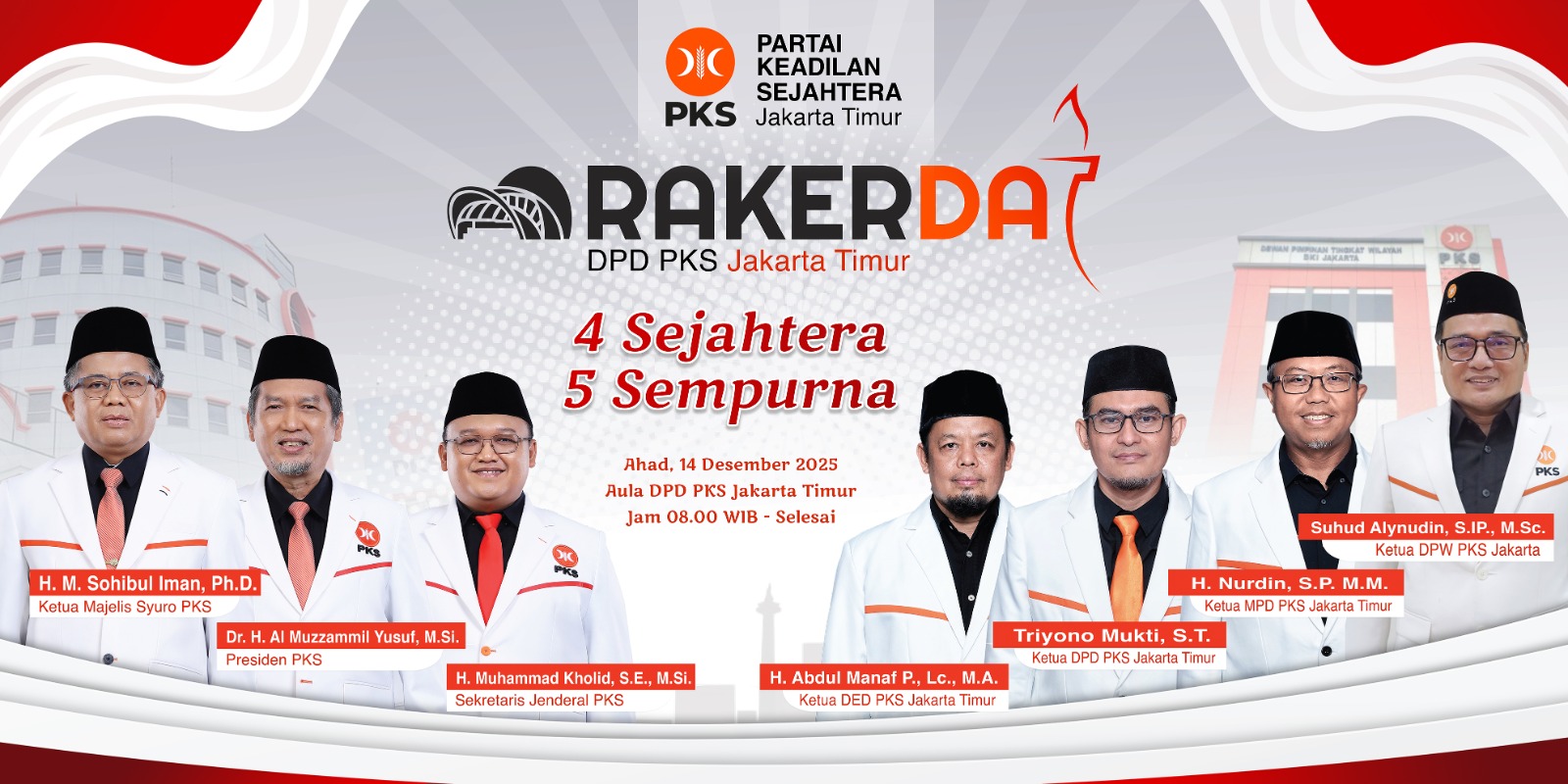 Ketua DPD PKS Jakarta Timur, Triyono Mukti, menjelaskan bahwa tagline “4 Sejahtera 5 Sempurna” menjadi simbol arah gerak baru PKS Jaktim dalam membumikan hasil Rakerwil PKS DKI Jakarta. Ia menegaskan komitmen menghadirkan program yang lebih terukur, dekat dengan warga, dan berdampak nyata.